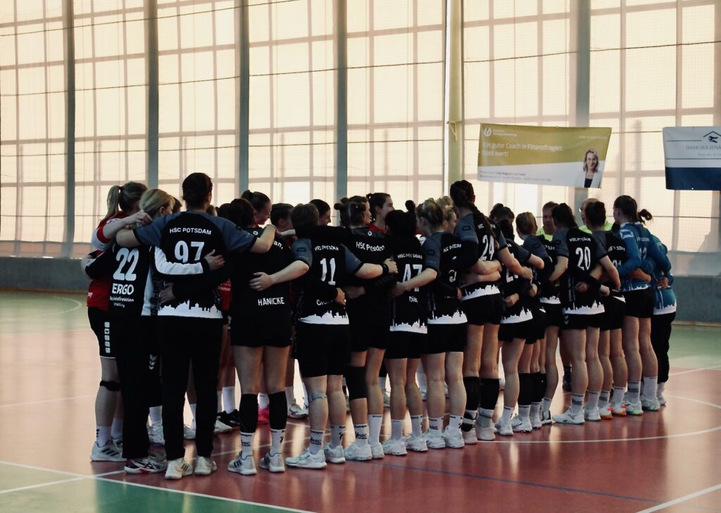 Ein besonderer Moment war das erste Tor unserer Bente im Trikot des HSC Potsdam, das für großen Jubel sorgte. Zwei weitere Highlights des Tages fand jedoch bereits vor dem Anpfiff statt: Unsere Minis liefen gemeinsam mit der ersten Frauenmannschaft ein und machten den Heimspieltag zu einem besonderen Erlebnis. Zusätzlich durften wir unseren Hallensprecher Klaus nach neun Monaten endlich wieder in der Halle begrüßen. Schön das du wieder da bist, so macht ein Heimspieltag gleich viel mehr Spaß!